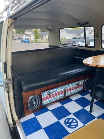 1972 VW Transporter Type 2 runs smooth, drives great, shifts smooth, and stops amazingly! This Bus was my daily driver all through high school. For the past 8 years, I have been traveling and living abroad so I haven\'t had much time to road trip. He is a trooper in all weather. There are no mechanical issues at all. I have regular maintenance done by my friend and old VW Pro that has been restoring and fixing buses most of his life. I can give you his contact info for future maintenance if you are local. I have the original Owner Operator Manual with Maintenance records ending at 42000 miles. In July of 2013, I wrote in my log book that it was at 59235 miles. We have been camping all over the Pacific NW and even went to Paradiso at the Gorge one year. Ran great in over 100+ degree weather. I special ordered the tiles from the UK, madmatz. There is no visible body rust, and there was none on the interior when we gutted it 10 years ago. Seals all around are in great condition. The entire interior of the bus body has been sealed and lined with Dynamat Heat Barrier and Sound Deadening Mats. We made the jump seat, table, and under-seat cabinet. Lots of extras. I have the cot that can be installed in the front. A set of studded snow tires & propane heater for winter drives. Starts up great and runs great in freezing weather. Driven 273,619 miles The windshield has a new crack in it from the new road construction. My bus mechanic quoted me about $300 to replace it. The fuel gauge is a little wonky but it does drop to tell me that I\'m getting low on fuel. The blinker control needs to be adjusted because you have to manually flip it after you complete your turn. I took the curtains out to wash them so you can choose to put them back up or not. Please Note The Following **Vehicle Location is at our clients home and Not In Cadillac, Michigan. **We do have a showroom with about 25 cars that is by appointment only **Please Call First and talk to one of our reps