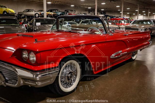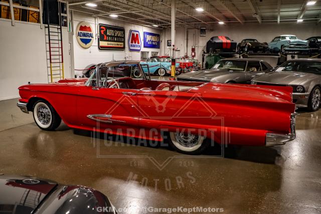 1959 Ford Thunderbird - 429ci Cobra Jet V8- Automatic Transmission- Red Exterior- White Convertible Top- Red And White Interior- Restored In 2018This 1959 Ford Thunderbird is a beautifully restored example of Ford?s iconic personal luxury convertible, blending classic design with serious performance. Finished in a striking red exterior with a white convertible top and a matching red-and-white interior, it perfectly captures the style and spirit of late-1950s American motoring.Under the hood, this Thunderbird has been upgraded with a powerful 429ci Cobra Jet V8 paired with an automatic transmission, giving it far more performance than stock while maintaining smooth, effortless drivability. The restoration, completed in 2018, brought the car back to show-quality condition with attention to both mechanical and cosmetic detail.The interior offers classic 1950s elegance, from its sweeping dash design to the bright chrome accents and luxurious two-tone upholstery. Combining timeless styling, open-top cruising, and modernized V8 power, this 1959 Ford Thunderbird is an exceptional example of a classic convertible built to enjoy both on the road and at shows.