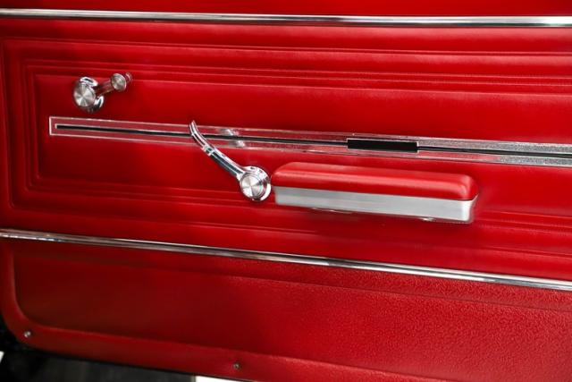 UNDERSIDE: It was body off frame restored and it is detailed to factory new condition. The steering and suspension was rebuilt, upgraded with Gas A Just shocks. It has the correct dual exhaust system and the fuel system was replaced including the tank. The brake system was gone through and has a new e-brake assembly. Looking up at the motor it is clean Chevy Orange with a correct starter and canister type oil filter. The correct Muncie 4-speed transmission has a rebuilt shift linkage. The restored driveshaft even has assembly line markings and it goes back to the 10 bolt rear end with a 3.08 posi gears. The floors appear to be immaculate smooth metal painted semi-gloss black.