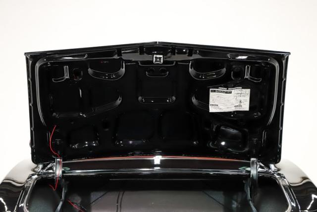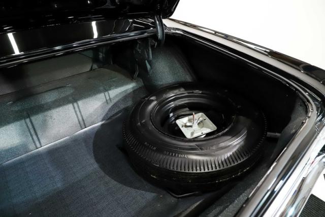 TRUNK COMPARTMENT: It is clean and complete! Under the trunk lid and the jambs are painted gloss black. Inside is clean metal with a neat spatter finish. The sticker, weatherstrip and mat have been replaced. The spare and jack assembly is all there and detailed.