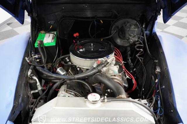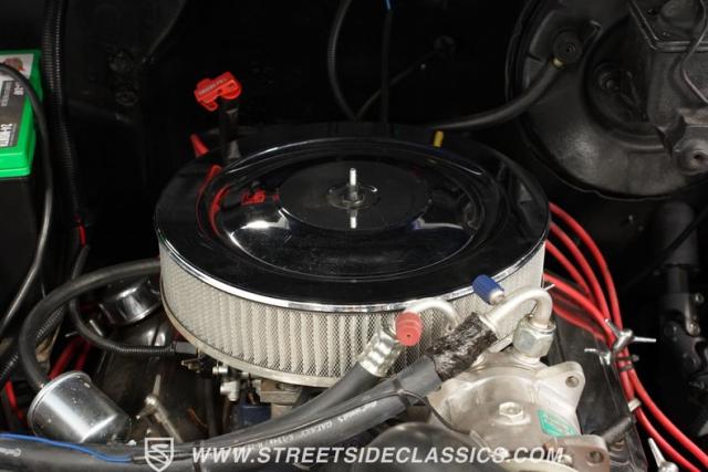 A 350 V8 engine paired with a 700R4 4-speed automatic transmission delivers strong performance. The aluminum radiator with electric fan maintains optimal temperatures during spirited driving. Chrome valve covers and air cleaner add visual appeal to the engine bay. The dual exhaust system with glasspack-style mufflers produces an authoritative exhaust note. Front disc brakes provide ample stopping power, while air shocks in the rear suspension allow for adjustable ride height. The 12-bolt rear end efficiently puts power to the pavement.