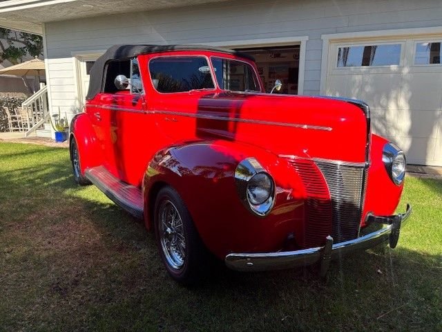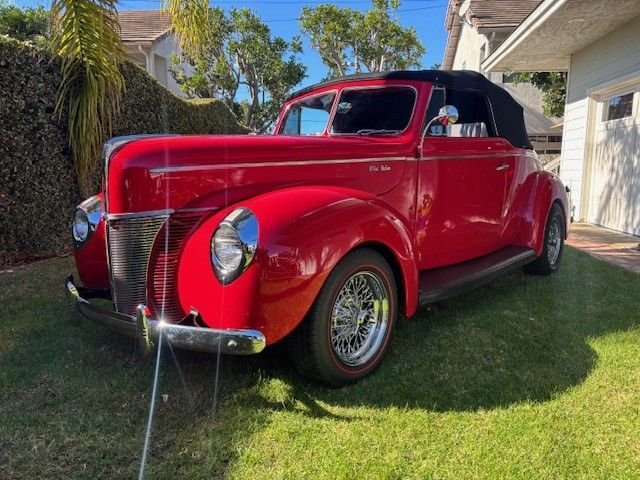 This 1940 Ford Convertible Street Rod is a beauty all around with a show quality bright red finish, red leather interior and black cloth convertible top. Power is supplied by a 350 Chevy crate motor backed by a turbo 350 automatic transmission. All new wires and plugs, all billet accessories, and MSD ignition. Mustang two style front end, Chevy 10 bolt rear end, rack and pinion, and Fatman shocks. Inside find Classic Gauges, Ididit chrome column, tilt Banjo wheel, cruise control, air conditioning, light window tint, and CD player with sub woofer to roll with your favorite old time tunes. All this cool convertible sits on Truespoke wheels on Diamond Back redline radials. Offered at $58,500 OBO. For more information please visit our website at www.classiccarmarketing.net or call us at 619-972-7073. Please mention the vehicle you are inquiring about so we can respond promptly. Inspections are encouraged before any purchase, of any vehicle, anywhere.
