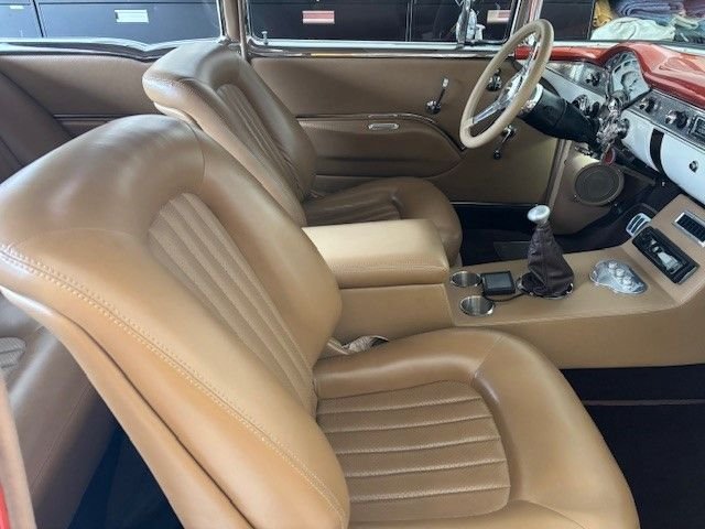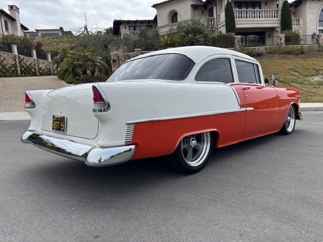 This 1955 Chevy 2 Door Sedan is stunning with only 1,400 break in miles, all new stainless, and boasts a small block 383 stroker sitting in a highly detailed engine bay. Edelbrock aluminum intake, Holley Sniper fuel injection, ceramic coated headers, and aluminum radiator. All this cool is backed by a 4L60E automatic transmission with overdrive. Tubular front A arm suspension with coil overs, and 10 bolt rear end. Upgraded hydroboost brake system with disc up front, drum in the rear, and dual exhaust for that low rumble we car nuts love to hear. Move inside where a full leather interior with sweet buckets seats and new accent trim all around highlights a custom center console, chrome tilt steering column, Lokar shifter, Billet floor pedals, new Vintage AC and heat, tinted glass, and sound system to roll with your favorite tunes. A beautiful finished trunk and polished rims on high performance tires finish her out just right. This is one absolute show car in excellent condition all around. Offered at $91,500 OBO, this is a must have for your collection. For more information please visit our website at www.classiccarmarketing.net or call us at 619-972-7073. Please mention the vehicle you are inquiring about so we can respond promptly. Inspections are encouraged before any purchase, of any vehicle, anywhere.