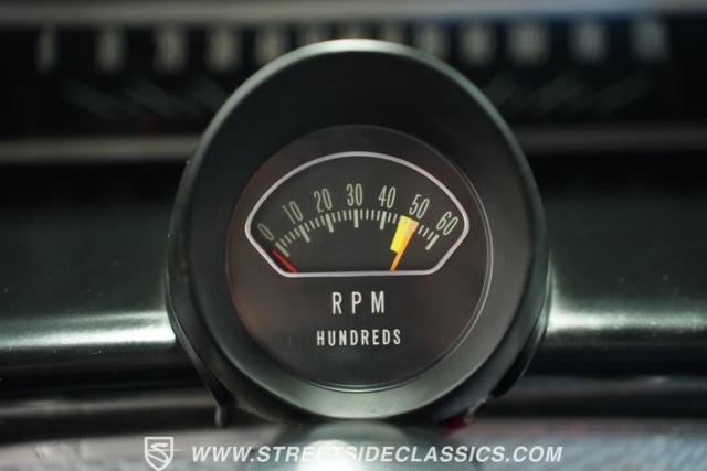 Under that expansive hood, we find out what all the fuss is about. Centered in a clean engine bay sits a 409 cubic-inch V-8. Part of Chevy\'s famous W-series big-block motor family, this 409 sports a set of chrome valve covers and an aluminum radiator. Topped with a four-barrel Holley Performance carburetor, Edelbrock intake manifold, and lightweight Edelbrock aluminum heads, spent gases are expelled via FlowMaster dual exhaust. That power is routed through a tried-and-true Muncie M20 four-speed manual transmission before heading out to the stock-style rear end, which transfers those ponies to the pavement through a set of beautiful, 15-inch Rallye wheels sporting knock-off-style center caps, shod in BFGoodrich tires.