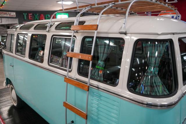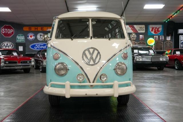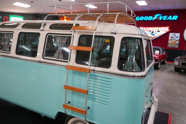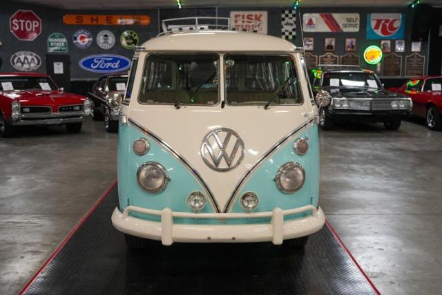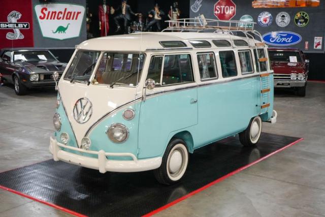 This Brazilian-built 1973 Volkswagen Type 2 Microbus embodies vintage charm with its air-cooled 1.6L flat-4 engine and 4-speed manual transmission, delivering an authentic driving experience. Featuring a 3.88 gear ratio and 4-wheel drum brakes, it maintains classic VW simplicity and reliability. Finished in an iconic Light Blue and White two-tone exterior, the matching Blue and White interior enhances its nostalgic appeal. Rolling on 14\" OEM steel wheels with chrome hubcaps and Pirelli white wall Cinturato tires, it stays true to its era. With OEM intake, Solex carburetor, and mechanical fuel pump, this Microbus is a timeless cruiser for vintage enthusiasts.