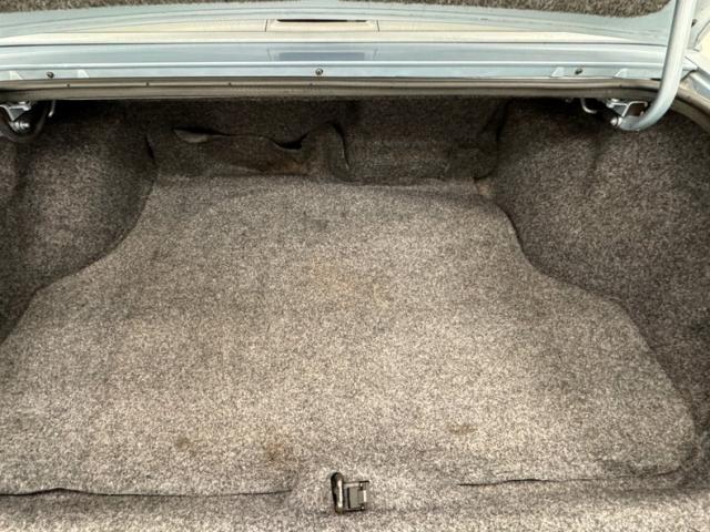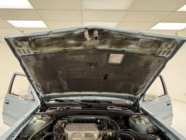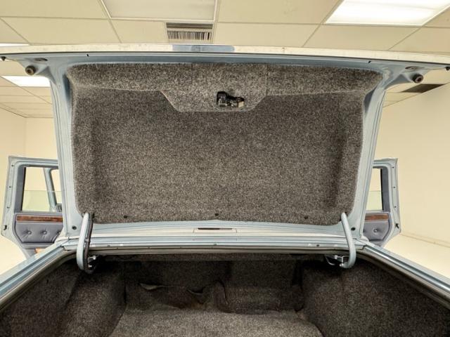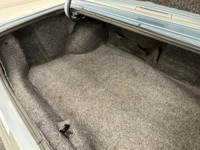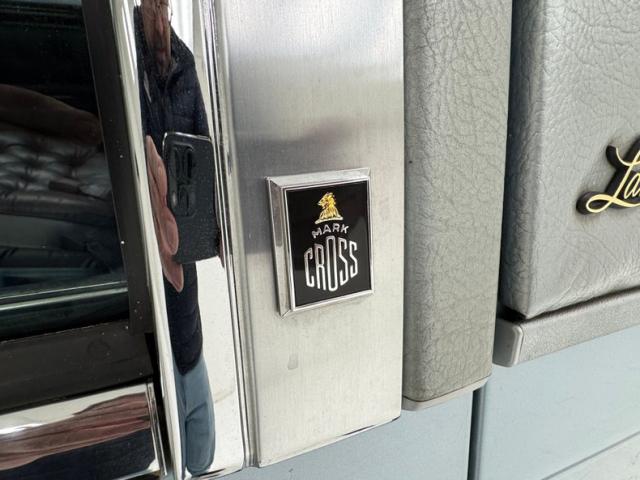 This is where the Mark Cross really stands out beginning with what the brochure calls \"leather style door trim panels,\" button tufted and surrounded by simulated burl wood and chrome switchgear including seat adjustments all four doors present cleanly and have a courtesy light of their own. From there, richly appointed bucket seats include tufted leather and padded headrests and the rear seat follows suit, each remaining in excellent condition. Lots of features are provided by the Luxury Equipment Package including the electronic vehicle information center that lights up like an early DOS operated computer screen tucked neatly into a faux wood faceplate. Push buttons control the A/C panel and the AM/FM/Cassette player in the center of the dash while plush blue carpet covers the floor. Above us, the headliner has started to sag and the visors have dimpled, but the finished trunk is in good order.