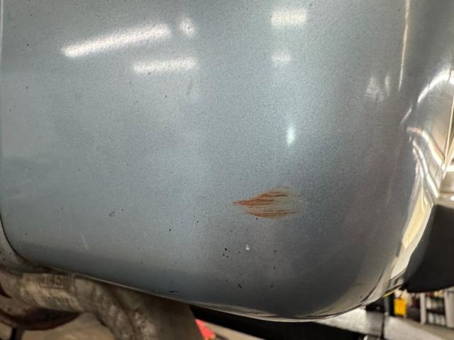 Solid and clean underneath with typical metal oxidation, discoloration and minimal surface rust with one spot of advanced surface rust on a body brace. A single exhaust system includes a stock style muffler and power disc brakes are supplied to all four wheels. The load leveling suspension system includes Macpherson struts in front and a beam axle with coil springs in back.