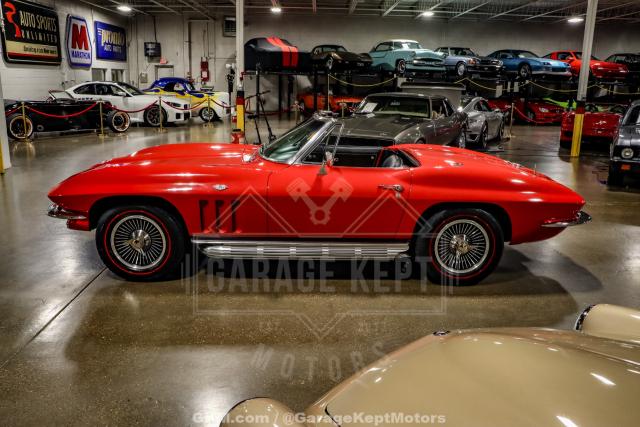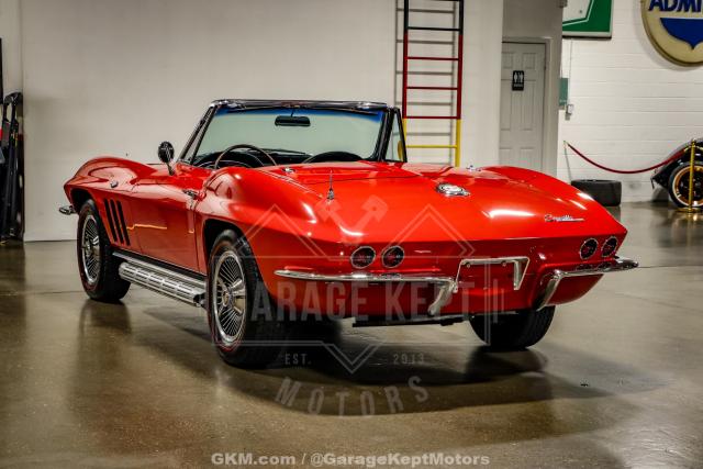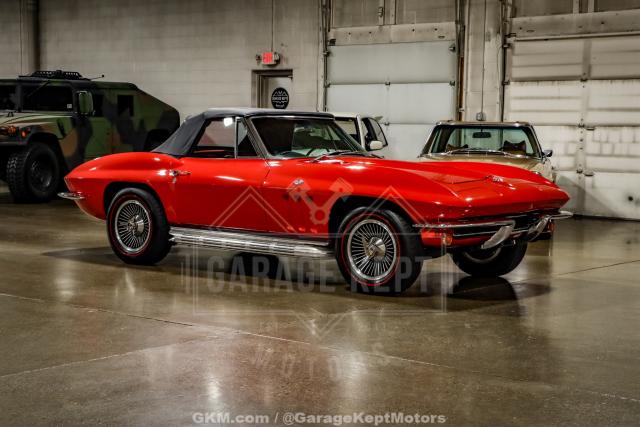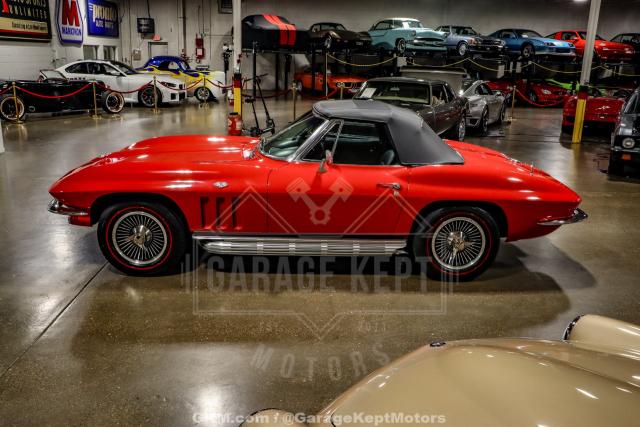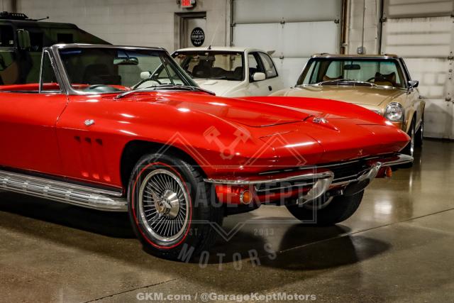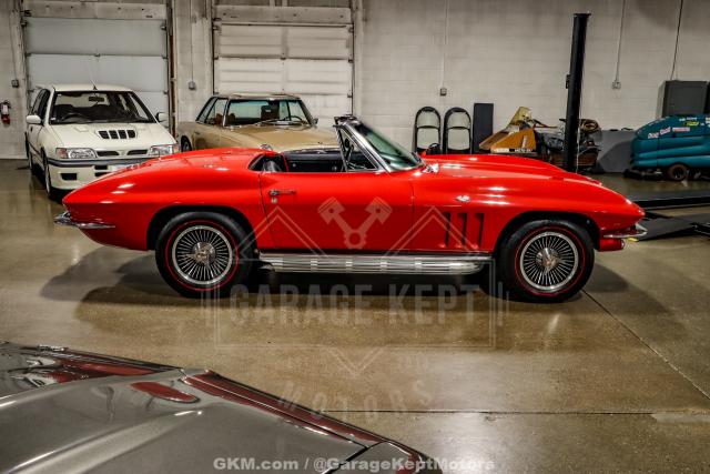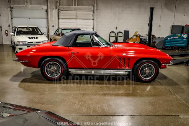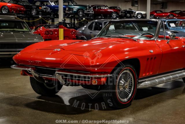 1965 Chevrolet Corvette Convertible- 327ci V8- 350 Horsepower- 4 Speed Manual Transmission- 62,450 Miles Shown- Red Exterior- Black Convertible Top- Black InteriorThe 1965 Chevrolet Corvette Convertible represents one of the most celebrated eras in Corvette history, combining aggressive styling with serious performance. As part of the iconic C2 Sting Ray generation, the 1965 model year introduced four-wheel disc brakes, further elevating the Corvette?s capabilities and solidifying its place among the world?s top sports cars of the time.Under the hood is a high-performance 327ci V8 producing 350 horsepower, a legendary small-block known for its rev-happy nature and impressive output. Paired with a 4-speed manual transmission, this Corvette delivers an engaging and authentic driving experience that perfectly captures the spirit of 1960s American performance.Finished in a timeless Red exterior with a Black convertible top and matching Black interior, this Corvette showcases a classic and highly desirable color combination. The sleek body lines, hidden headlights, and driver-focused cockpit all contribute to the unmistakable presence that has made the C2 generation one of the most sought-after Corvettes ever produced.Showing 62,450 miles, this 1965 Corvette Convertible offers the perfect blend of performance, style, and collectibility. Whether enjoyed on sunny weekend drives or added to a curated collection, it stands as a true icon of American automotive history and a standout example of Chevrolet?s golden era of performance.