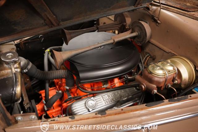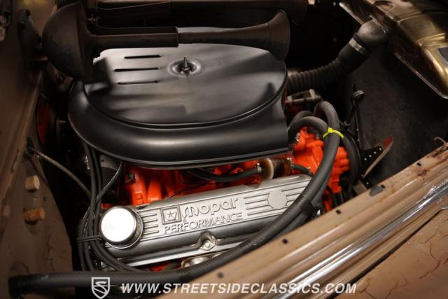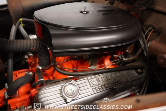 Underneath its vintage frame, the Chrysler Royal roars to life with a 318 V8 engine, married to a 3-speed A727 Torqueflite transmission. This mechanical symphony is completed with shorty headers and an aftermarket exhaust, ensuring its growl is as attention-grabbing as its appearance. With 4-wheel power disc brakes, it stops as smoothly as it goes. Tucked under that is an Edelbrock 4-barrel carb, too, feeding the beast just right. And the Ford later model rear end gives this old-timer a bit of modern muscle.