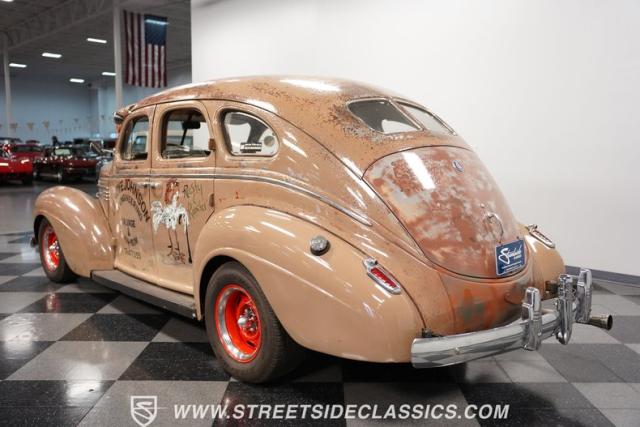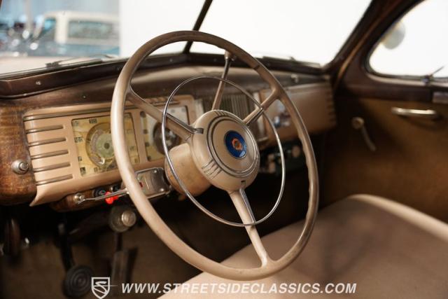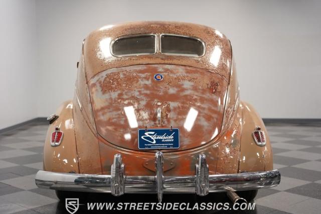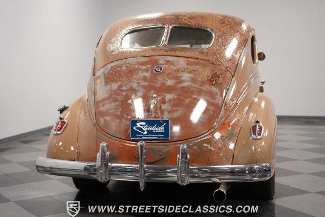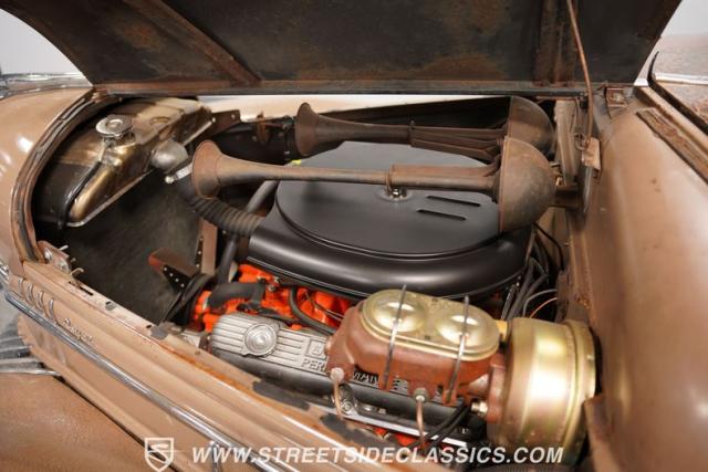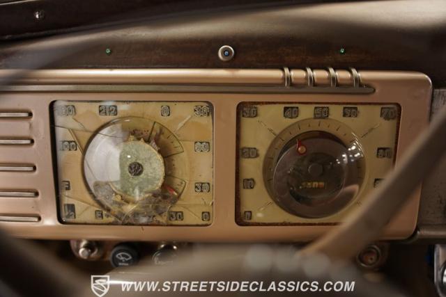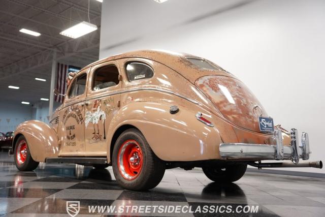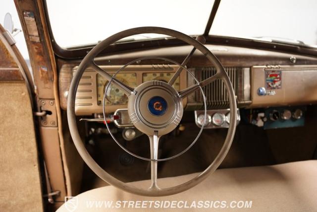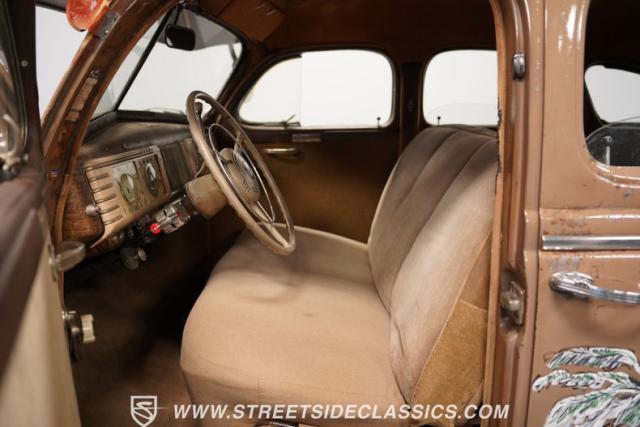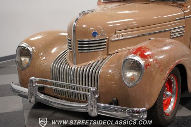 This 1939 Chrysler Royal Street Rod machine takes you back to the gritty, roaring \'30s, yet drives like it knows the modern streets. A blend of pre-war charisma and rat-rod attitude. Its brown exterior, draped in a clear-coated patina, whispers tales of yesteryears. The suicide doors, running boards, and sun visor add a rebellious touch to its classic silhouette. Rolling on Chrysler Police Car Style Steel Wheels, this authoritative look looks like they mean business. And the chrome hardware gives it a shine that catches the eye and doesn\'t let go.