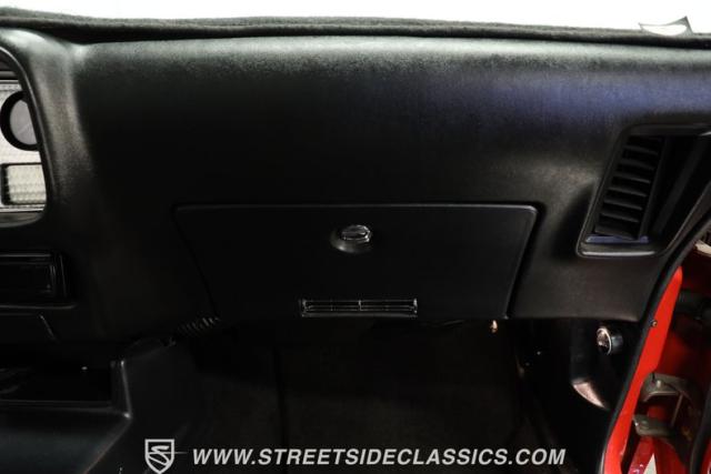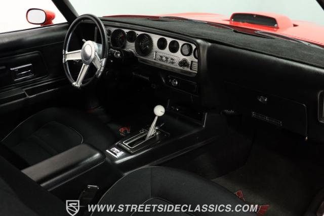 Here is a dramatic-looking 1974 Pontiac Firebird Trans Am Tribute muscle/sports car. The Buccaneer Red looks mesmerizing and is a highly sought-after color among Trans Am enthusiasts. Its stance, paired with chrome rims, looks amazing, and of course, the shaker hood, fender vents, ground effects, and rear spoiler all add to its eye appeal. Both the front and rear ends are in great condition, with solid bumpers that keep the Trans Am Tribute looking period-correct. The small amount of chrome trim present is just enough to balance the exterior color and make it look just right.