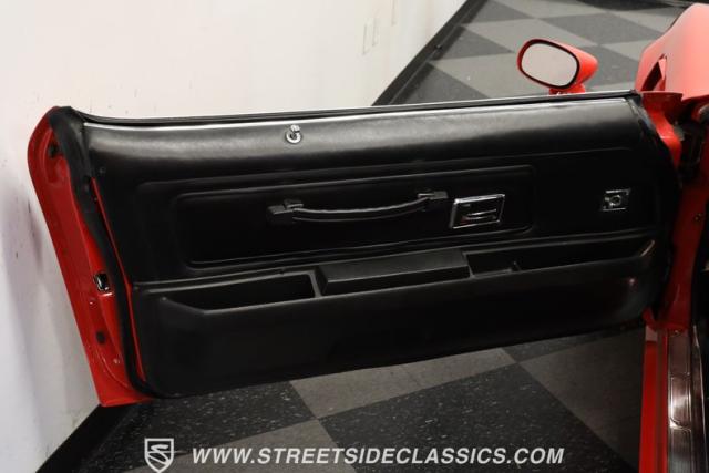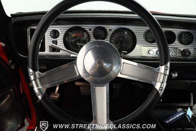 The engine bay is equally impressive, featuring billet aluminum hood hinges, alternator, A/C pump, and other shiny dress-up pieces. A serpentine wide-belt setup drives the accessories. Cooling is handled by a Be Cool aluminum radiator with dual electric fans. At the heart of this machine is a 455 cubic-inch engine topped with Edelbrock Aluminum heads, an Edelbrock aluminum intake, and a Holley 4-barrel carburetor. Power is transferred through a TH400 3-speed automatic transmission to a Currie 9-inch rear axle with 3.25 rear gears.