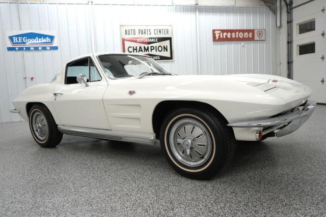 THIS VEHICLE IS LOCATED IN OUR PA. SHOWROOM !!!!! Numbers Matching 327cid Small Block Chevrolet Engine. Automatic Transmission. Power Steering. Power Brakes. Front Drum Brakes. Rear Drum Brakes. 15 Inch Wheels. Front Tires: 205/75/15. Rear Tires: 205/75/15. 3.36 Gear Ratio. Air Conditioning. Original Cast Intake. Carter 500cfm Carburetor. Original Points Distributor. Stock Coil. Mechanical Fuel Pump. Stock Ignition. Stock Radiator. Clutch Fan. Ermine White Exterior. Correct Color. Original Paint. 1 of 3,909 Ermine White 1964 Corvettes. Driver & Passenger Side Mirrors. Chrome Front & Rear Split Bumpers. Hide A Way Headlights. Billet Grill. One Piece Rear Window. Dual Air Vents Behind Doors. Black Leather Interior. Bucket Seats. Center Console. Black Carpeting. Black Door Panels. Seat Belts. Power Windows. Black Headliner.
