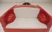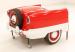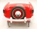Destined for the crusher, this 61 Metropolitan became the brainchild of a creative automotive man who conjured up the idea to have the ultimate conversation piece. The front of the car was demolished while the Continental rear of the sub compact remained intact. Work began by trimming any excess material and fashioning a larger rear seat than the factory stock rear seat. It is covered in marine grade vinyl which is white and surrounded by Redline, (red), painted steel from the original car, very apropos for the early 1960\'s. The wheel wells are the armrests and the couch/rear of the car, swivels on long posted lockable casters on the back and padded feet to level itself on virtually any surface in front.