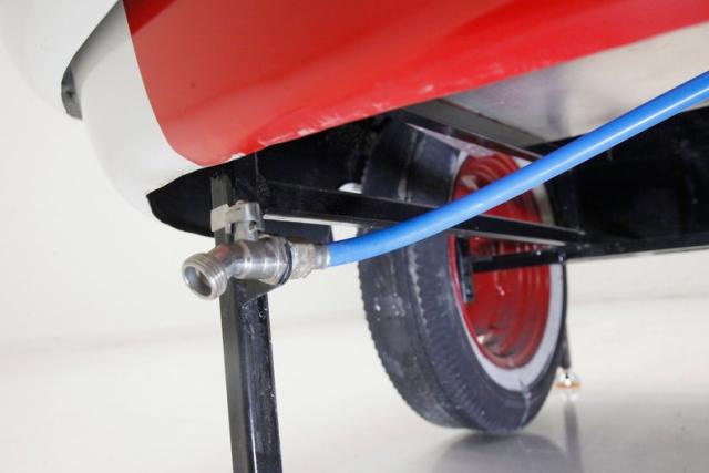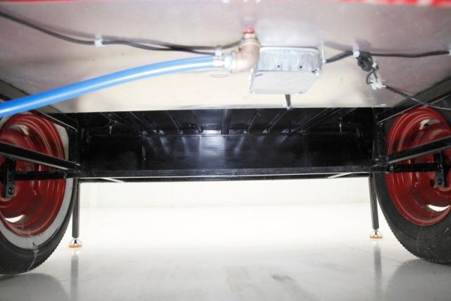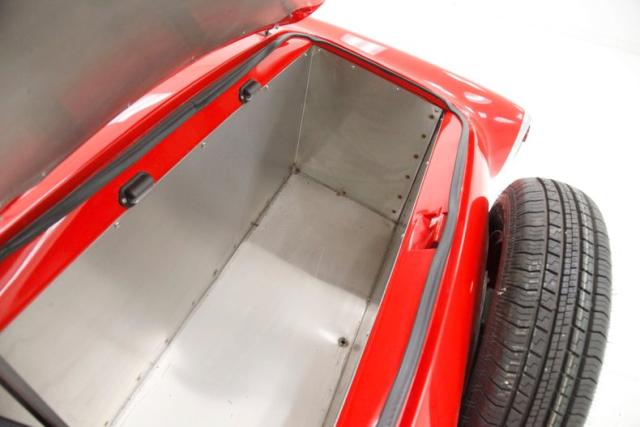 In the trunk, which now has become a stainless steel lined drink cooler, has a 2 inch thick high R value insulation within its confines. There is a drain plug to rid the cooler of excess water. Interior trunk lighting as well as the tail lights are LED and are powered by a 110v AC power supply which runs through a 12v DC converter. It measures 14.5 inches wide, by 36 inches long and is 14 inches deep which turns out to be about 4 cubic feet. Plenty of space to hold drinks and various food items to last at least a 500 mile race! \"Hey bud grab me a beer from the trunk..\"