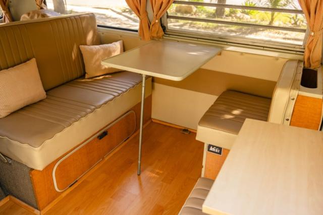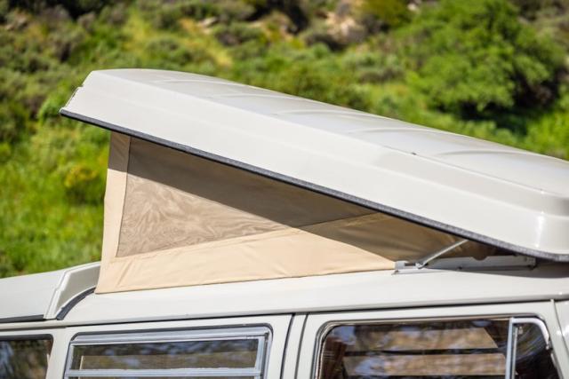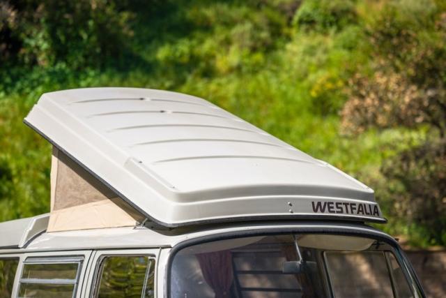 Very nice Westfalia camper with new upholstery, new pop top material, screens, zip in panels, and a great paint! The fiberglass top and roof are also in excellent condition. Equipment includes a 1800 cc engine, 4 speed transmission with freeway gearing, Blaupunkt Hamburg MP57 sound system (USB port, MP3 compatible), new exhaust system, and 120 volt shore power.
