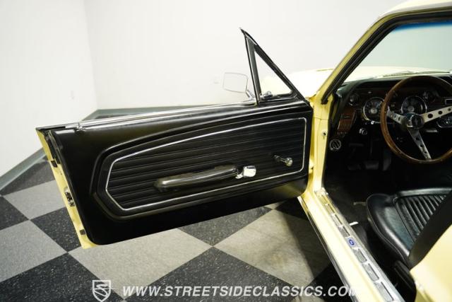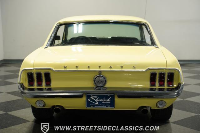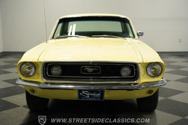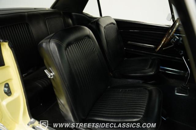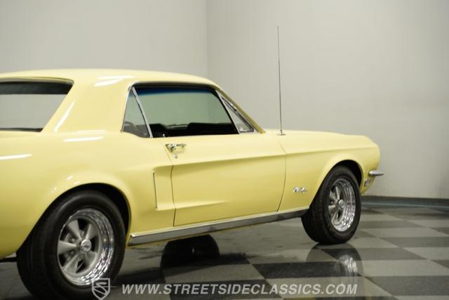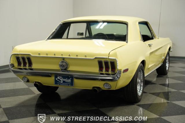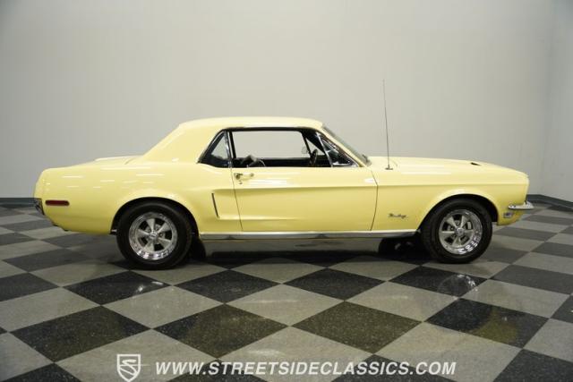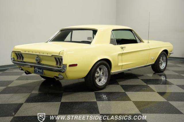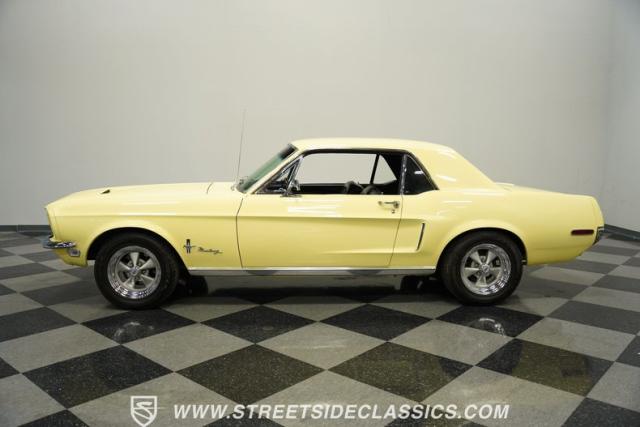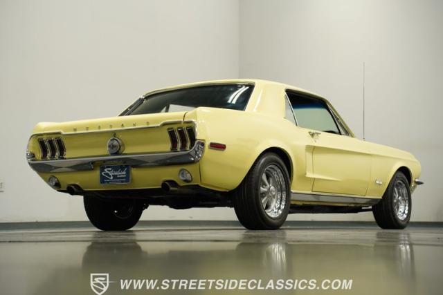 Freshly restored and gleaming in Meadowlark Yellow, this 1968 Ford Mustang coupe exudes classic American muscle appeal. The clean flanks look sharp with chrome rocker trim adding distinction to the profile. Good panel gaps and glass throughout speak to quality restoration work that elevates this pony car above typical driver-quality examples. Chrome brightwork remains in excellent condition, complementing the bright paint finish. The stance sits just right, with 15\" Cragar wheels wrapped in 205/65R15 tires giving this Mustang a performance-oriented appearance on the street.