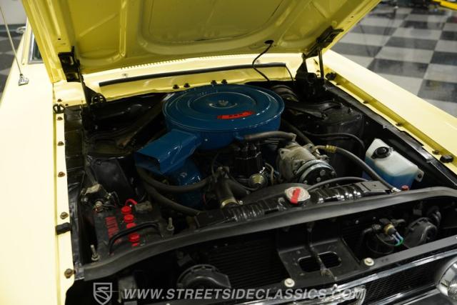 A 289 V8 engine anchors this Mustang in a clean engine bay, now mated to a 5-speed manual transmission that replaced the original C4 automatic. Painted valve covers add visual punch to the mechanical components. The full Mustang II front suspension conversion with tubular control arms and rack and pinion steering puts modern handling in this classic pony car. Shorty headers feed into a dual exhaust system for improved breathing and a muscular tone. Power steering and power disc brakes make driving a breeze while the R134a air conditioning system keeps the cabin cool during summer blasts down your favorite roads.
