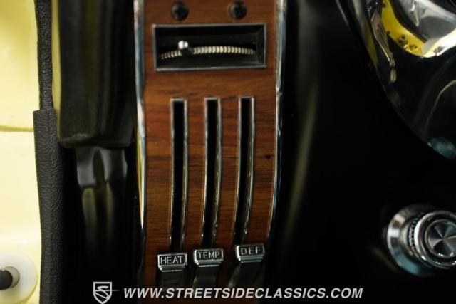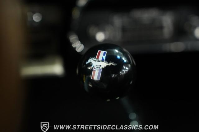 Black vinyl dominates the interior, creating a perfect contrast against the bright exterior. Bucket seats grip your sides during spirited driving while staying true to the classic Mustang formula. The dash houses gauges that display with crystal clarity for quick info at a glance. The wood-rimmed steering wheel feels substantial in your hands while adding a touch of old-school cool. Newer carpet keeps things looking tight and clean throughout. The retro-style radio blends period looks with improved sound for cruising tunes. Functional A/C means you can drive hard without breaking a sweat.