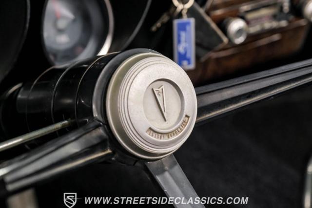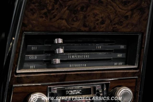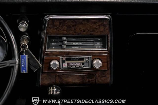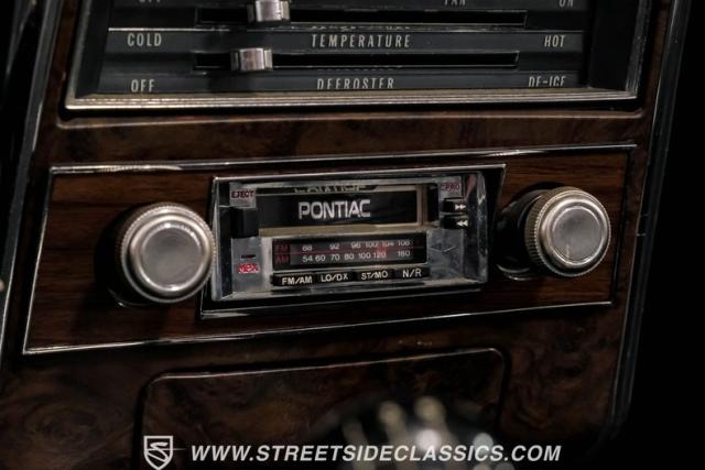 Inside, the black vinyl interior creates a cockpit-like atmosphere that\'s both functional and stylish. Low-back bucket seats offer proper support for extended drives. The floor-mounted shifter for the 5-speed manual transmission is positioned perfectly for quick gear changes. A Pontiac AM/FM cassette radio provides the soundtrack for your journey, blending period-correct looks with improved functionality. The dash layout is driver-focused, with easy-to-read gauges keeping you informed of the car\'s vital stats. Seatbelts are in place, ensuring safety without compromising the vintage feel.