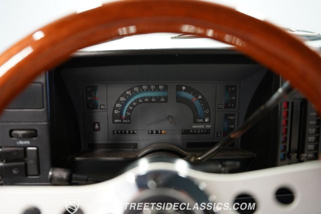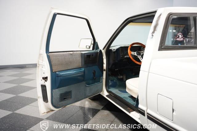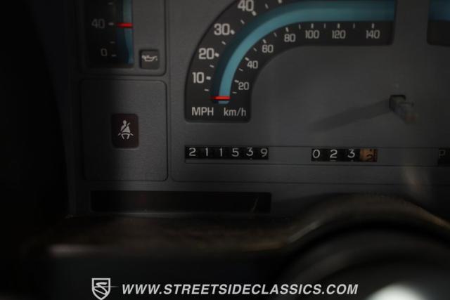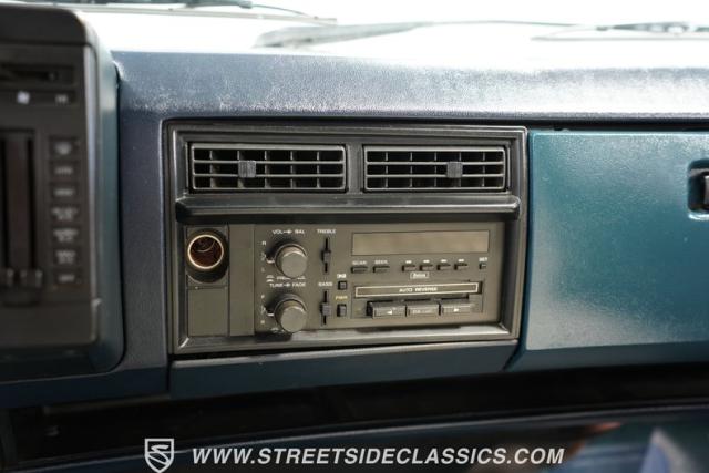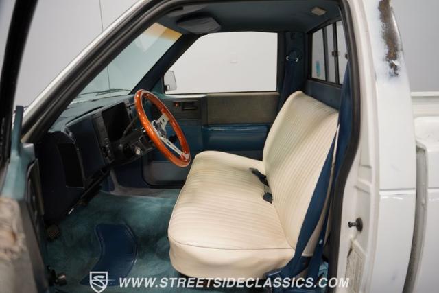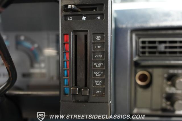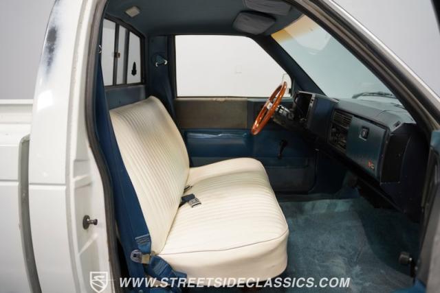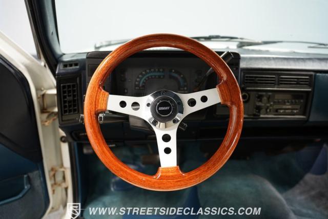 The white and blue interior blends utility and comfort in true truck fashion. A vinyl bench seat with tuck-and-roll styling offers a classic look with modern durability. The aftermarket Grant steering wheel puts a sporty spin on the driving experience. Original AM/FM cassette player keeps the tunes rolling, while updated HVAC controls maintain comfort in any weather. Fresh carpets complete the cabin\'s practical yet stylish vibe.