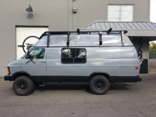 1984 Dodge B350 4x4 Camper Van. Awesome rig. Such a fun adventure van ready to take you anywhere. 4x4 conversion with 6\' lift. straight axles. High Top with 6\' inside height. Outside has been freshly painted with custom bumpers front and rear, custom rear aluminum box that houses the propane tank and hot water heater and hot shower, custom aluminum roof rack that can haul all the boards you need along with 400w of solar. 10\' Awning. Front hitch mount you can put gear or bikes up front. Fresh set of K02\'s on matte black 16\' wheel. Inside has been completely redone. Sprinter seats for driver and passenger (swivels), propane propex heater that keeps you toasty even when its 15 degrees out, magnetic insulated window covers throughout, loncoin flooring with aluminum trim, custom cabinets, electric fridge, dometic sink and 2 burner stove combo, water pump, tons of storage, queen size bed, 2x roof vents, over cab storage and over bed storage, Lagun swivel table, and more. Engine just keeps on cranking. Edelbrock carb. All brakes have been replaced (rear drums, disc front), new brake booster, newer fuel pump regulator, almost all hose\'s have been replaced, fresh radiator, rear diff gears replaced. Ive had it about 10 years and have gone on numerous trips with it. A one of kind, very unique, head turning camper van. Please Note The Following **Vehicle Location is at our clients home and Not In Cadillac, Michigan. **We do have a showroom with about 25 cars that is by appointment only **Please Call First and talk to one of our reps at 231-468-2809 EXT 1 ** FREE Consignment Visit Our Site Today Easy To List Your Vehicle and Get it Sold in Record Time.