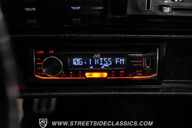 Inside, custom touches elevate the driving experience. A premium quality custom front seat, complete with built-in cup holders, offers comfort and support. The dash features a custom upholstered dash pad, attractive Dakota Digital gauges and a JCV AM/FM/CD stereo. A column-mounted automatic shifter puts control at your fingertips, while a tilt steering column with original-style SS steering wheel completes the cockpit. From the custom door panels to its comfortable custom bench seat, every detail has been thoughtfully executed.