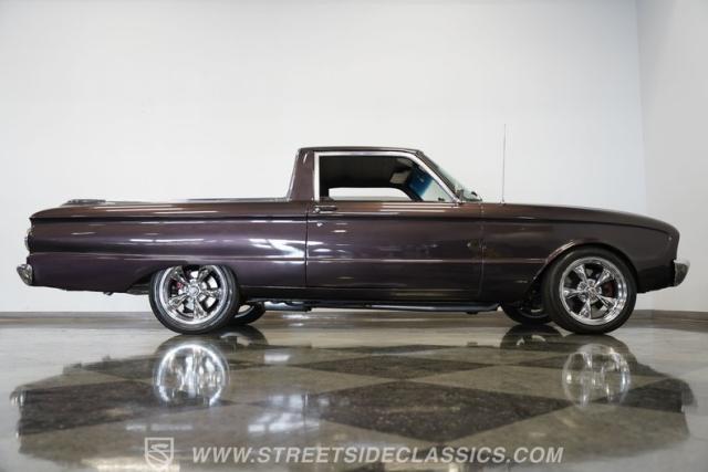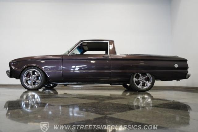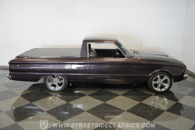 It represents a pivotal model that was the first to bring the \"half truck, half car\" configuration to fruition, but this 1961 Ford Ranchero Restomod has a lot more going for it than a storied heritage. Dressed in high-impact Purple Metallic paint that really shows well, this is a sharp-looking ride, still in possession of its classic looks while also equipped with some outstanding aftermarket modifications to amplify its curb appeal and equip it with a driving experience that\'s truly hard to come by. It\'s fresh off a very well-executed build that\'s left it with a precise body alignment and crystal-clear glass, and the custom airbrushed \"Ranchero\" lettering on its tailgate is a great added touch.