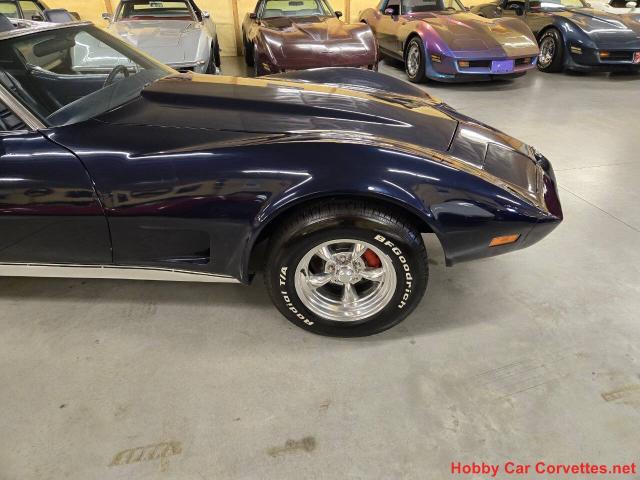 1977 Dark Blue Corvette Blue Leather Int For Sale For more information visit: https://www.hobbycarcorvettes.net/corvette/1977-dark-blue-corvette-blue-leather-int-for-sale/ CASH PRICE: $ 18000 Transmission: Automatic Engine: 350 Mileage: 50,331 on dash Details 350 engine, automatic transmission, 50,331 miles on the dash (title is exempt for mileage), blue leather interior, power steering, power brakes, X-A/C, 5 spoke wheels, tilt & telescopic steering column, power windows, AM/FM radio, dual exhaust, Edelbrock aluminum intake, Edelbrock carburetor, and much more. The last owner rebuilt the current engine, replaced the seat covers and carpet, replaced the brake calipers, master cylinder, and brake booster, dual exhaust, and much more. We changed the oil and filter, transmission fluid and filter, and checked and lubed the chassis. We replaced the upper and lower control arm bushings, upper and lower ball joints, front shocks, sway bar links, selector seal, rag joint, leaf spring rubbers, fuel pump hoses, power steering control valve, power steering hoses, transmission cooler hoses, and much more. 1977 was the last year for the short back window in a corvette. GM released 4,065 Dark Blue corvettes in 1977 out of 49,213 total production.
