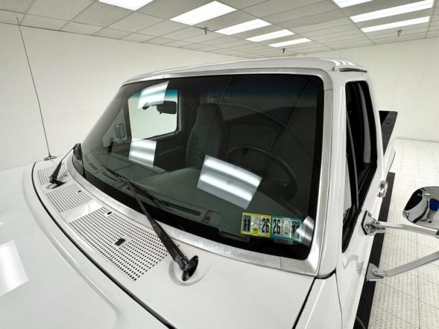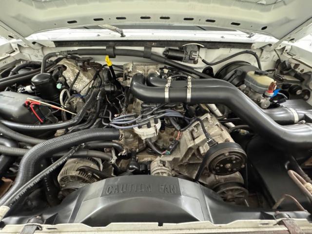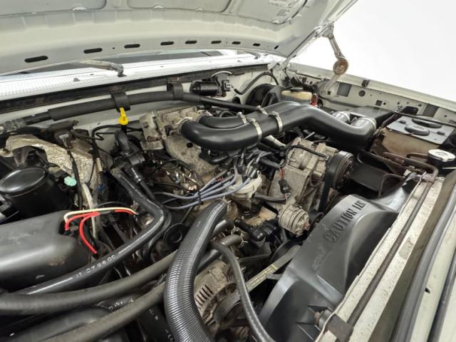 Last of the OBS, the square body here is coated in an attractive Oxford White with two stage coverage that has all the signs of a well cared for ride. Perched on 16-inch wheels and LT rated 75 series tires, there\'s a wide to the wheel opening and entry is aided by side steps at each door. Big gaps in the chrome grille vacuums incoming air and what\'s missed heads over the long flat hood, up and over the cab flanked by trailer mirrors. Chrome bumpers bookend the long truck and a solid rear window looks out over the bed which has sprayed liner and signs of usage but is undamaged. Imperfections include rock chips on the rocker panels and fender, scratching on the door sill, other various chips and scratches and some of them are touched up.