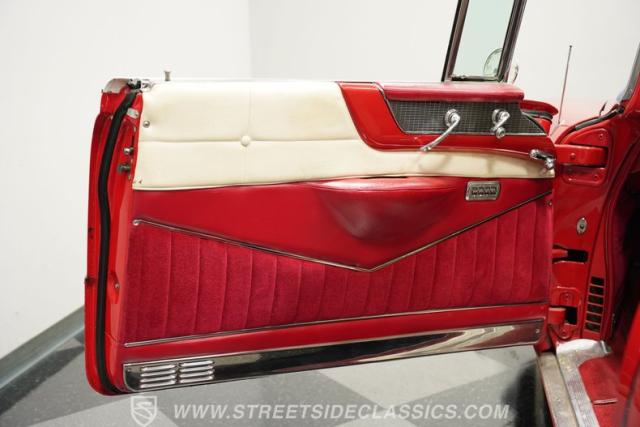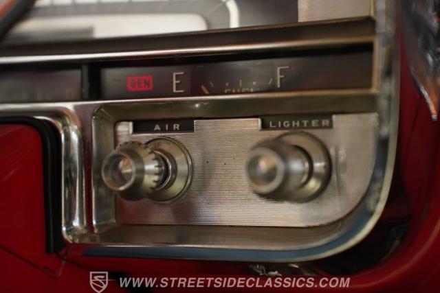 Inside, the cabin welcomes you with a beautifully restored two-tone interior featuring red cloth and white vinyl seating. The spacious split bench upfront offers comfort for all passengers, complemented by a large steering wheel and an expansive dashboard adorned with classic instrumentation. An AM/FM radio adds a touch of vintage convenience, making the interior as inviting as the exterior is stunning. This car\'s interior quality mirrors its exterior, showcasing meticulous restoration and slight use that invites you to sit back and enjoy the ride.