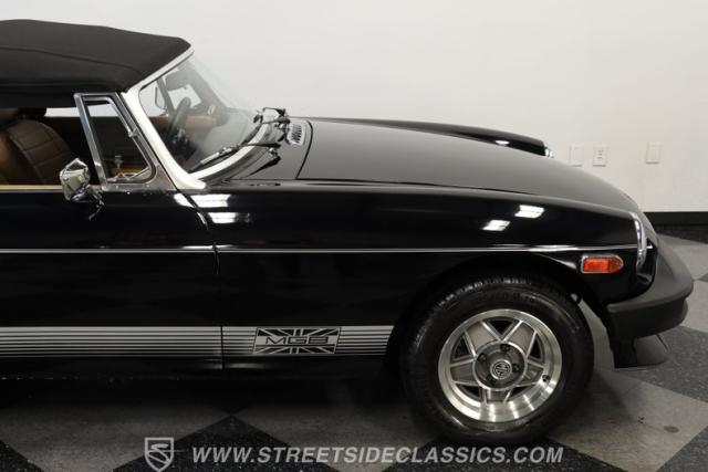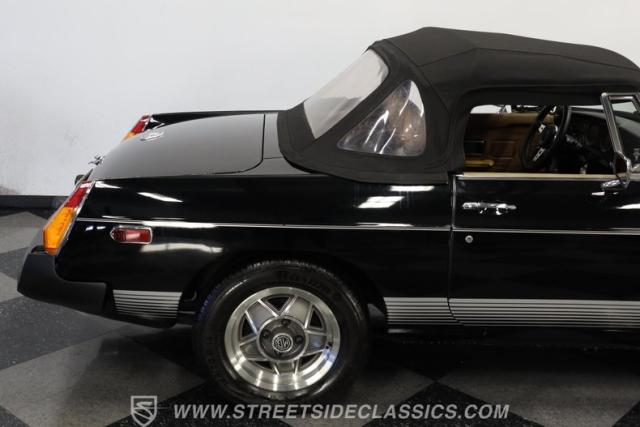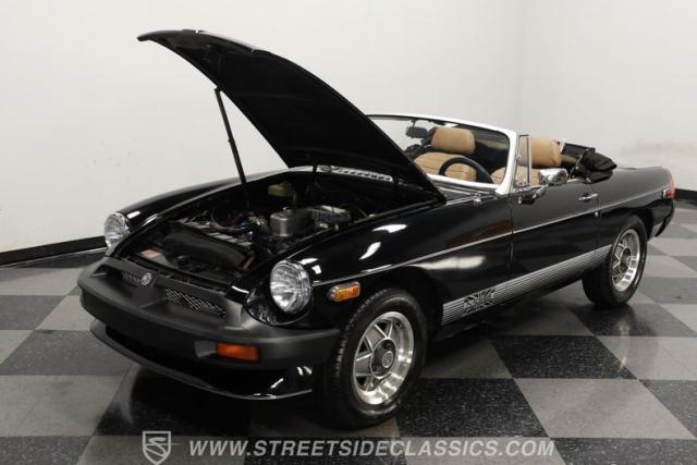 This 1980 MG MGB Limited Edition marks the grand finale of a British sports car legend. Draped in sleek black, this roadster showcases the iconic MGB silhouette with its distinctive rubber bumpers and sporty stance. The Limited Edition cars feature black paint, special exterior graphics, special wheels and a Limited Edition dash plaque. The black vinyl convertible top adds a touch of class, while the polished 5-star Triumph-style aluminum MG wheels wrapped in Barum tires (185/70R14) enhance its athletic appearance. As one of the last MGBs ever produced, this Limited Edition model carries the torch of British motoring heritage with undeniable flair.
