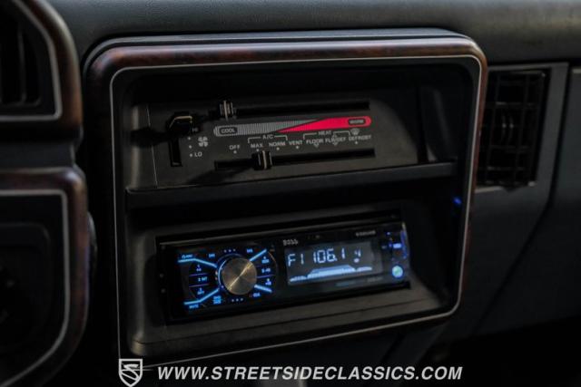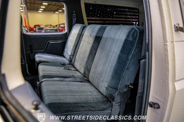 The blue cloth interior maintains much of its original stock appearance. Bucket seats with a center folding seat/console grace the front, while bench seating in the second and third rows maximizes passenger capacity. A Boss AM/FM/CD player provides the soundtrack for your journey, complemented by LED-upgraded gauge lighting for enhanced visibility. The cabin offers power windows, locks, and front seats for added convenience and comfort on long hauls.