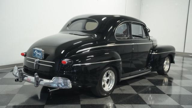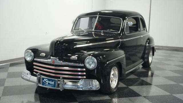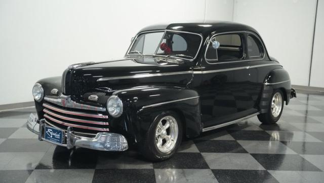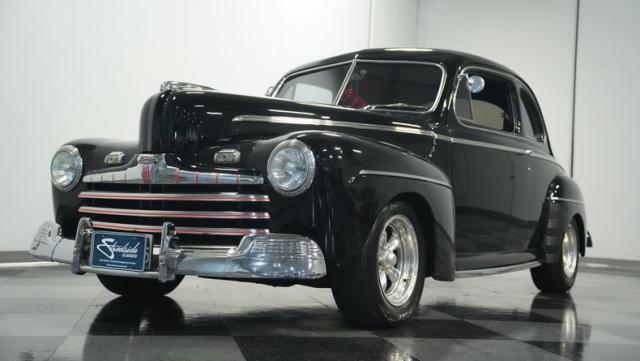 This \'46 Ford Coupe combines classic street rod style with modern performance and comfort. From the 305 V8 to the custom interior, this hot rod is built to cruise. Call today!