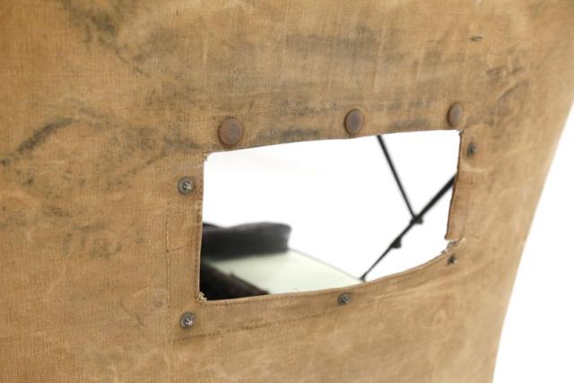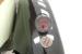 Original with black leather door panels that have a storage pouch on them. Low back overstuffed leather styled buckets are in front and there is a nice gap between them to allow access to the single wide rear bucket. This bucket has plenty of bodywork around it, with wide steel arms that have storage compartments within them. Up front, a machine turned steel dash front has a black top. Within this steel panel is a series of round gauges with black bezels and old fashioned pointers. A large black bakelite steering wheel is mounted on a thin metal stalk for a column. The floors are steel panels and some are missing under the drivers pedals.
