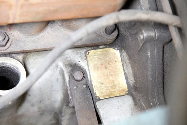 Under the thin design cowled hood sits an 856cc 4 cylinder engine. It is non operational, and shows as having just the block, head and lower casing. It is missing its 1-barrel Solex carburetor but intact is the 3-speed manual transmission to drive the front axle. The engine will need restoration to run.