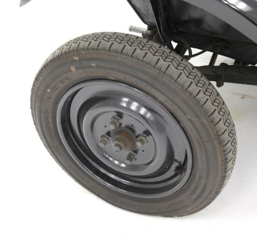 Some surface rust and patina but overall nicely preserved using leaf springs for the suspension, and rear mechanical drum brakes operated by a lever. The brake pedal actually is a transmission brake.