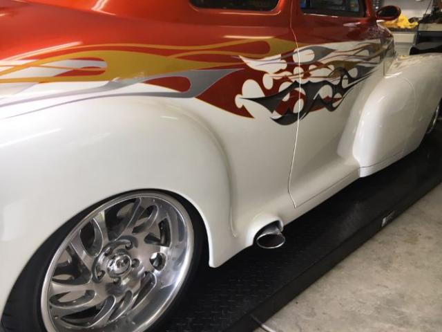 1940 Chevy Stylemaster The Motor is a 383 cu in. With a high lift cam 10 to 1 pistons. Dyno at 510 HP. Power steering, windows, doors, trunk, Raido antenna. 59 Impala steering wheel. Leather interior. Finished trunk looks like the door panels. Air Ride, disc brakes in front drum in the rear. Vintage air/heat. Light package under car with remote. Beautiful pearl white on bottom tangerine on top with graphics everywhere. LED Lighting front and back. One piece front windshield all windows tinted. This car is so much fun to drive. Handles like a dream and very fast.Everything in this works dynamite as it should. There is over $100,000 in the build. This gorgeous streetrod has 25,000 miles on it. Trans is a 400 auto. It rides on 18 wheels all 4. Drive this car back home without a hitch and have a ball doing it. It is very dependable. There is lots of body modifications beautiful work. Please Note The Following **Vehicle Location is at our clients home and Not In Cadillac, Michigan. **We do have a showroom with about 25 cars that is by appointment only **Please Call First and talk to one of our reps at 231-468-2809 EXT 1 ** FREE Consignment Visit Our Site Today Easy To List Your Vehicle and Get it Sold in Record Time.