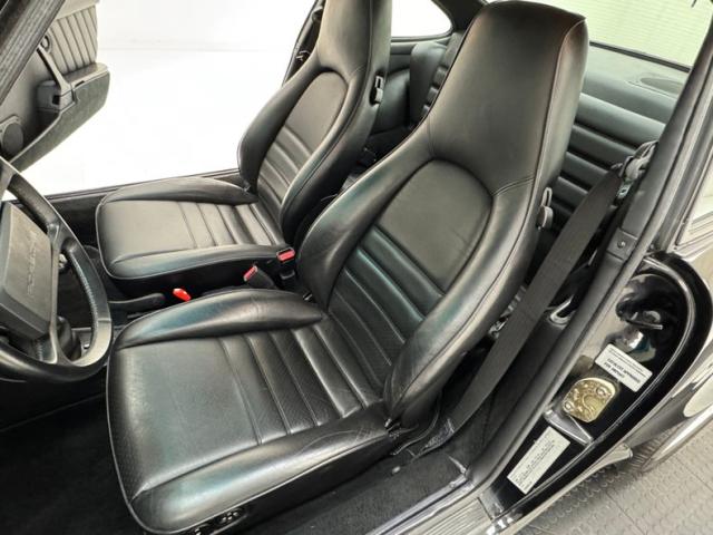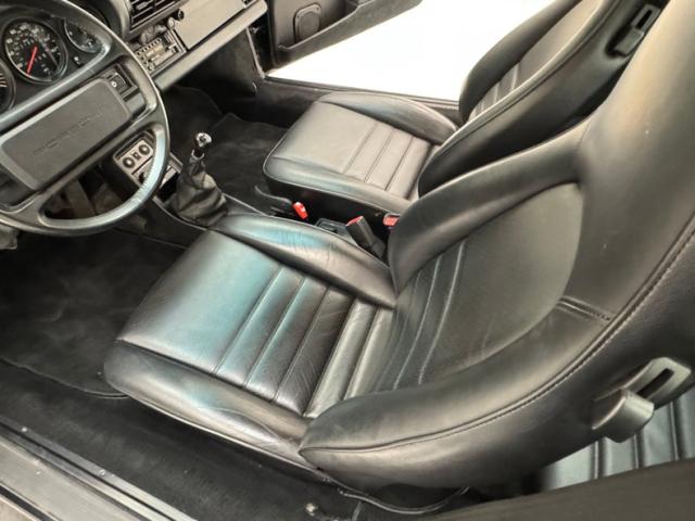 Handsome and efficient door panels include diagonal stitch design insert, minimal hardware, and a small storage bin and both present cleanly. The leather bucket seats are classically configured, pure Porsche with tall, narrowing headrests built in and the leather is in great shape. The suggested seats in back consist of pads of the same color and material as the front and look unused. Up front, the H-patterned Porsche steering wheel leads to the legendary 5-gauge cluster up ahead with everything you need to know including the time. An AM/FM/Cassette stereo in the center with some climate control knobs at the top of the center console where you\'ll also find the joystick. Black carpet loosely covers the floor in the footwells and also lines the front truck, and it\'s all clean and ready to go!