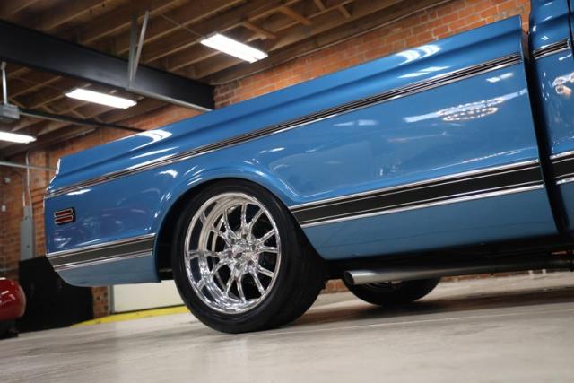 This 1970 Chevrolet C-10 Long Bed is a full-blown showstopper, drenched in a gorgeous Light Blue Metallic paint that pops from every angle. The body is straight as an arrow, and the paint quality is absolutely show-level - the kind of finish that turns heads before the engine even fires up. This truck has gone through a complete frame-off restoration, and it shows in every detail from top to bottom.