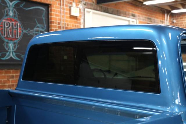 Out back, the bed is a showpiece on its own. The truck sports a high-end oak wood bed, laid down with precision and craftsmanship that screams quality. The front and rear roll pans, LED lighting, and new flush-mount glass give the exterior a sleek, modernized look without sacrificing its classic C-10 identity.