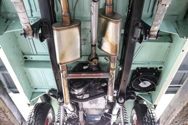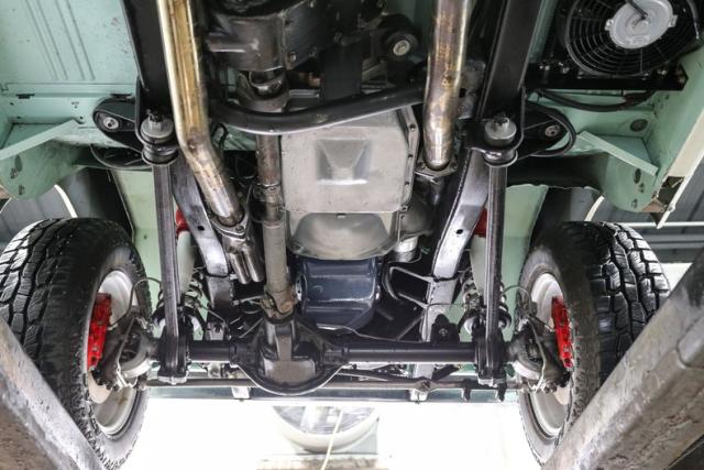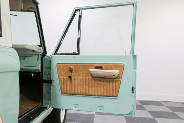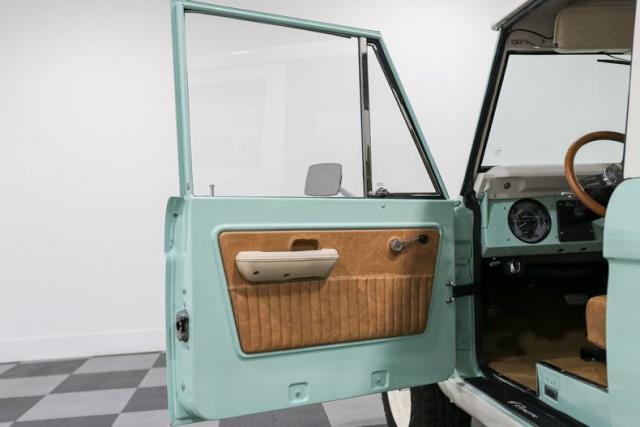 Finished in a striking custom two tone teal over a rich brown interior, this Bronco hits that perfect balance between vintage grit and modern refinement. The uncut rear fenders keep its original proportions intact, while 17 inch smoothie wheels and factory hubcaps nod to its heritage without losing attitude. The removable hardtop and insulated top make it just as ready for a weekend cruise as it is for a trail run.
