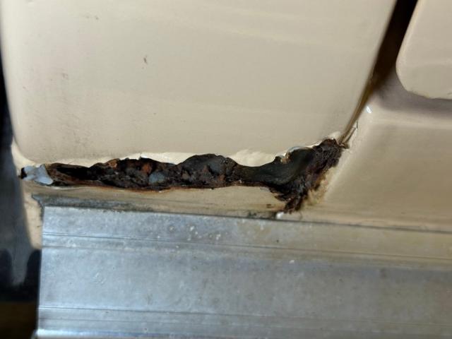 Canyon Copper is an appropriate name for the brown paint on our 2500 and the optional two tone combo with Beige creates quite a standout, especially when teamed with the matching Leer bed camp. The flat front fascia features stacked dual headlights and a black grille in an aluminum surround over the straight chrome bumper. This truck has the addition of a bug deflector which rockets incoming insects skyward and over the windshield. Chrome side mirrors are large, and the truck sits high on 16-inch steel wheels with 75 series LT rated tires. A few inches of the lift are tempered by the addition of DeeZee running boards, added to greatly ease entry. Chrome exhaust tips exit behind the rear wheels and a tow hitch is included on the diamond steel topped rear bumper. Overall, the exterior is in good condition with some random scratches and several areas of rust bubbling and a rust hole on the rocker panel.