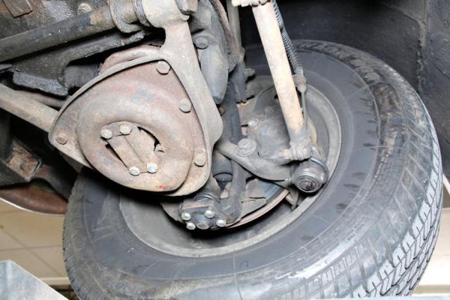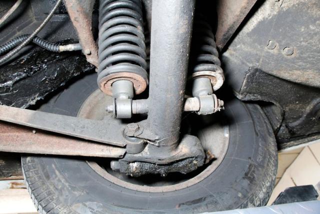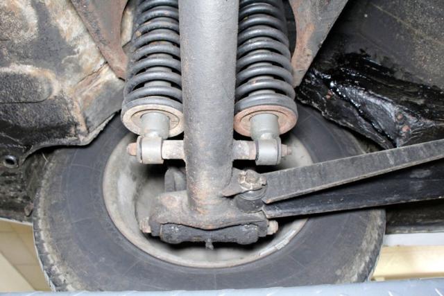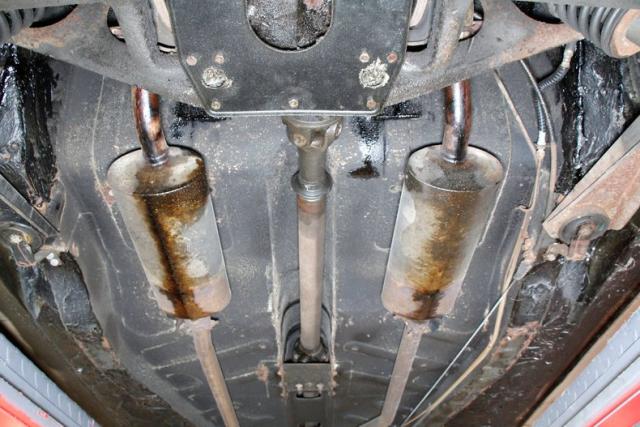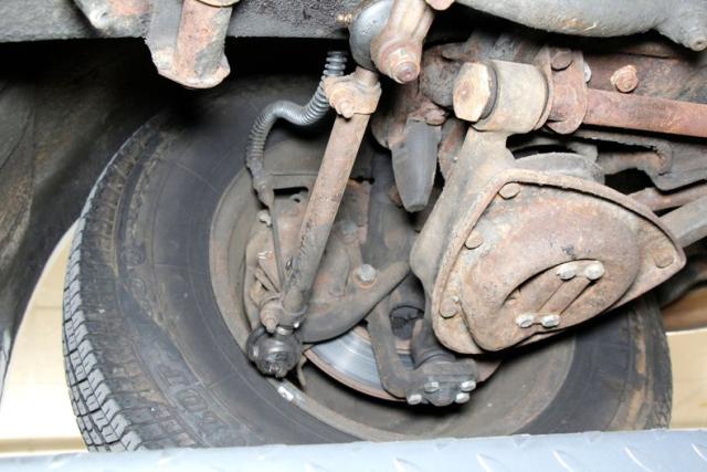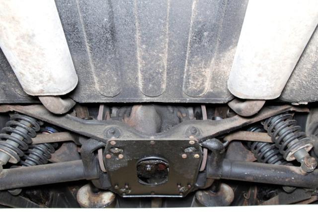 Showing some surface rust showing, and plenty of tar and pitch applied on some of the frame and rocker panels, we can only surmise what is under this material. Floorpans are sturdy, independent coil spring suspension is all around and power disc brakes for the stopping power.