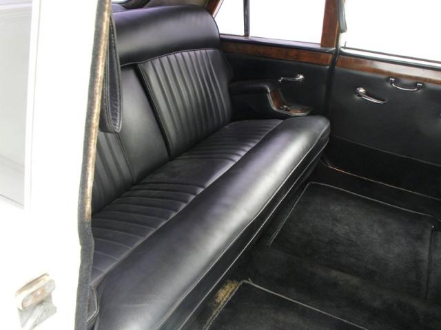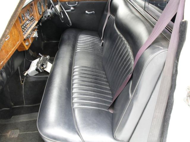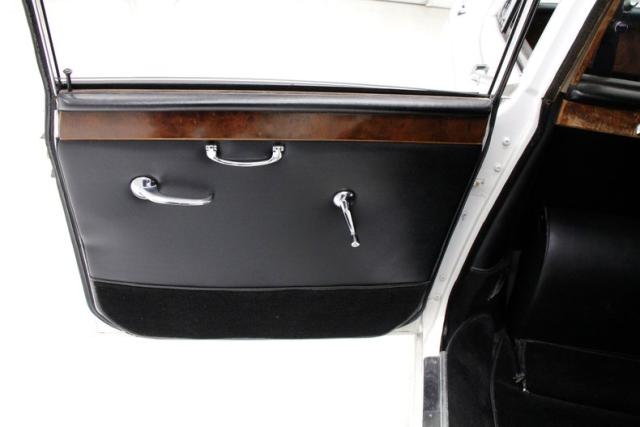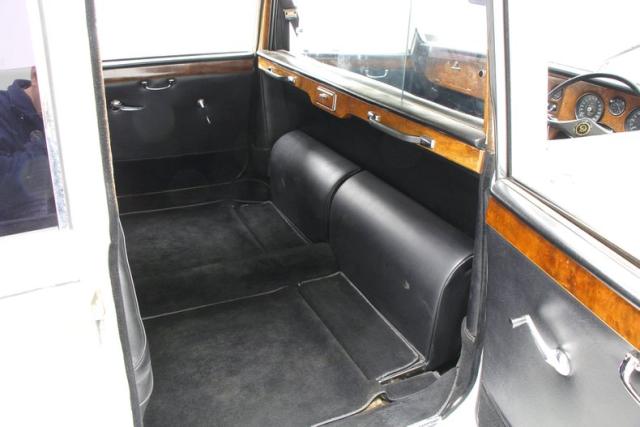 2 separate compartments basically make up the interior. Up front we note the drivers compartment which is a right-hand drive setup. A large black bench stretches from door to door and is very nicely preserved. A burl veneer dash also stretches the width of this car, and contains numerous gauges inserted, temperature controls, and a litany of toggles. The burl has lost some of its lacquer and shows some wear. Separating the two areas of this car is a burl covered partition with a sliding plastic window for extra privacy. In this space we note another luxurious black bench with side arms that contain essential controls and a full cigarette/cigar lighting and ashtray capabilities. Next to the partition are dual footrests that can become extras jump seats if needed. Black clean carpet floods all the floors and a fuzzy broadcloth in off white makes up the headliner.