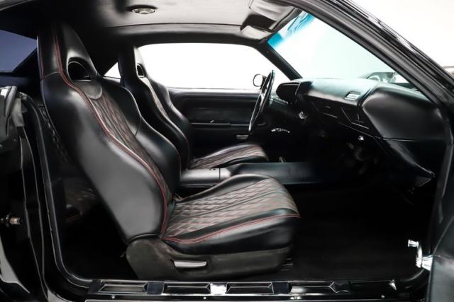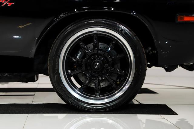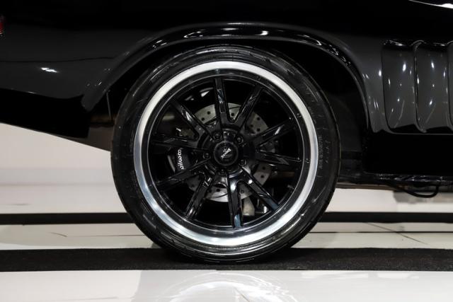 UNDERSIDE: Up front, the suspension has been completely upgraded with tubular control arms, coilover adjustable gas shocks, a thicker sway bar, and rack-and-pinion steering for vastly improved handling and responsiveness. Out back, it features tubular upper and lower control arms along with double-adjustable coilover gas shocks. The 3 inch TIG welded stainless exhaust with X-Pipe delivers an aggressive tone through SpinTech mufflers and the correct square R/T tips exiting cleanly through the valance. A fully custom fuel system supports the fuel-injected powerplant. The upgraded drilled and slotted Wilwood disc brakes at all four corners will stop you in a dime and are complete with a functional parking brake. Beneath the aluminum engine is an extra-capacity oil pan and a high-torque starter. A built 727 TorqueFlite transmission sends power to a stout 3.90 Sure Grip rear end. The floors are all clean rust free metal with undercoating and a satin black finish.