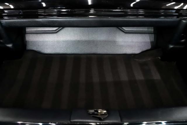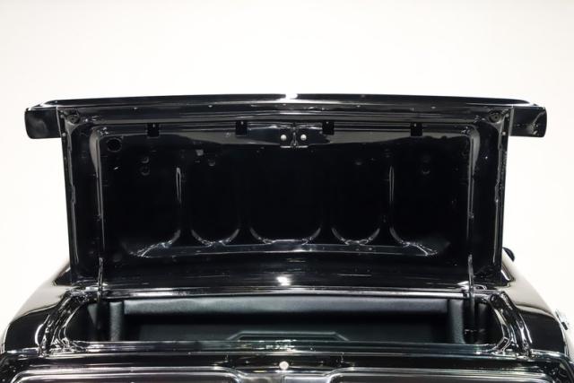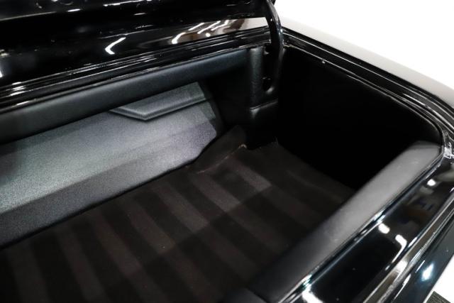 TRUNK COMPARTMENT: Fully finished! The entire trunk has been nicely boxed and carpeted with great detail. Removable panels conceal the relocated battery and look amazing too with a quality fit. The underside of the trunk lid and inside the jamb are neatly painted Formal Black.