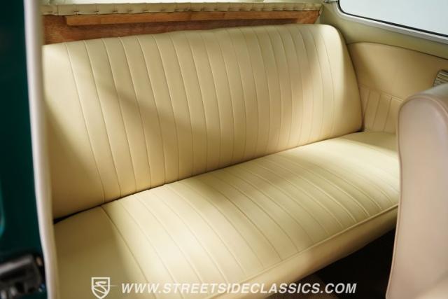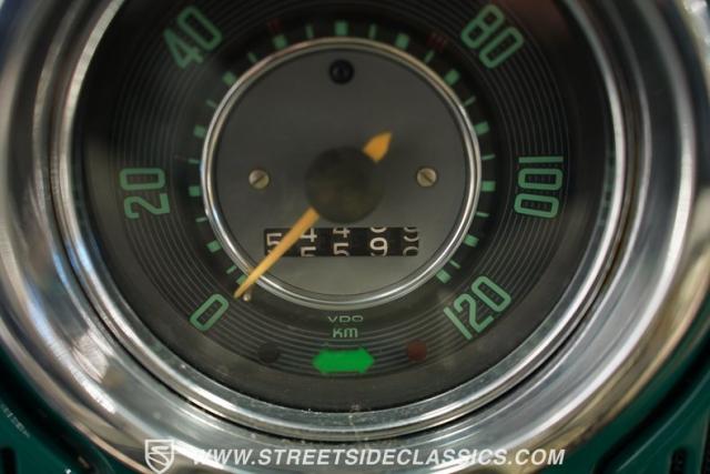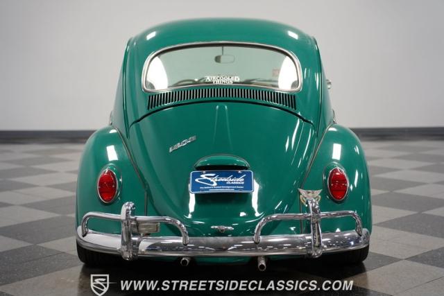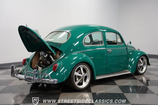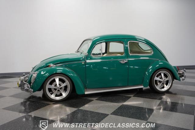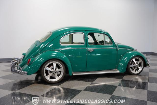 From the sun-drenched streets of Brazil comes this 1965 Volkswagen Beetle, featuring So Bernardo do Campo crests that verify its authentic Brazilian origins. The green exterior rides low and sporty on 17-inch alloy wheels wrapped in 205/40R17 tires. Fog lights illuminate the road ahead while the lowered stance amplifies its street-smart attitude. Its clean body lines flow from front to back, creating a pure South American look.