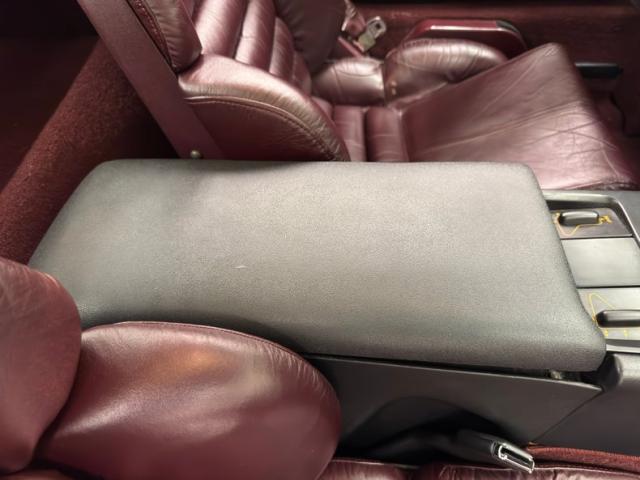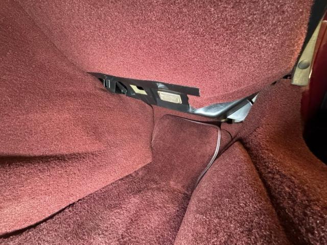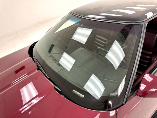 Ruby Red leather buckets with wonderfully pleasing patina show use, but not overuse. Lowering yourself into this cockpit, you will feel like a sports car endurance driver, strapped in but with all the creature comforts: power seat controls, power windows, cruise control, anti-skid mode, climate control, power locks, power mirrors, and an AM/FM/CD/Cassette sound system that will be music to your ears. A smattering of black vinyl accents in the form of the center console, door pulls, dash, and armrests, breaks up all the Ruby Red leather and gives the cockpit a very classy yet sporty look. A large information screen is seen, as well as a mixture of analog and orange glow digital gauges. Under the large glass rear greenhouse is a carpeted storage area that holds the removable targa roof and is carpeted in plush ruby red carpet.