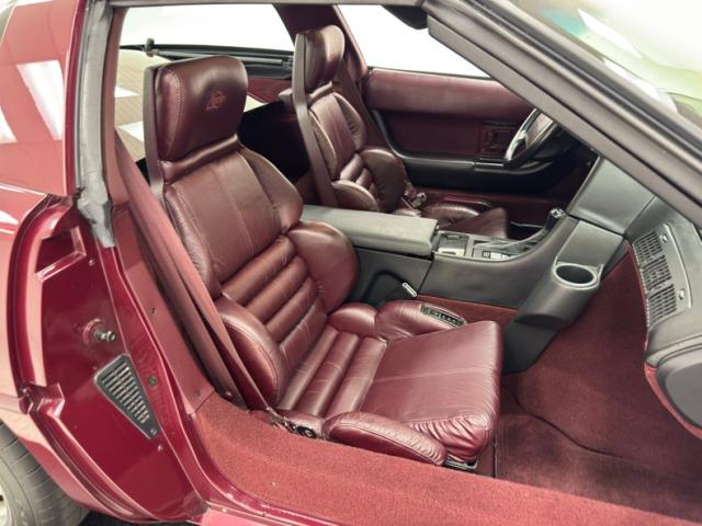 All correct 40th Anniversary Corvette badging, stuck to the immaculate Dark Ruby Metallic fiberglass exterior with a removable tinted see through top for some extra excitement and as an extra bonus a body colored top is also included. A consignor stated factory rear spoiler in matching Ruby Red is on the rear deck and gives the car a definitive racer look although there are some questions to the validity of this statement. Hidden headlights with rebuilt motors and bronze gears and integrated matching bumpers very thin in height in the low-slung front, and squared off on the rear, this iconic design \"Vette\" drips early 90\'s conventions.